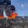 Mazot yüklü tanker alev alev yandı, gökyüzünü kara dumanlar kapladı