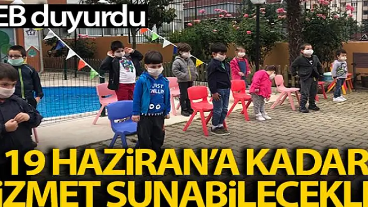 Milli Eğitim Bakanlığı, resmi okul öncesi kurumların da 19 Haziran'a kadar hizmet sunabileceğini açıkaldı.