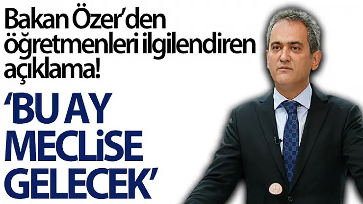 Milli Eğitim Bakanı Mahmut Özer, 'Öğretmenlik meslek kanunu teklifi inşallah bu ay içerisinde Türkiye Büyük Millet Meclisine gelecektir. Türkiye Büyük Millet Meclisinde değerlendirilme sürecinde desteğinize olan inancım tamdır. Sizlerin de destekleriyle bu bağlamda önemli bir eksikliği daha gidermiş olacağız' dedi.