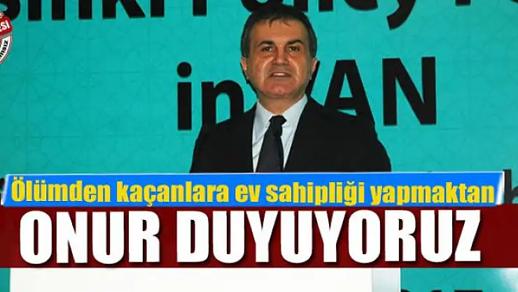Avrupa Birliği (AB) Bakanı ve Başmüzakereci Ömer Çelik, Türkiye'nin 3 milyonun üzerinde Suriyeli'ye ve 400 bin Iraklı'ya ev sahipliği yaptığını belirterek, 'Ölümden kaçan bu insanlara ev sahipliği yapmaktan büyük bir onur duyuyoruz' dedi.