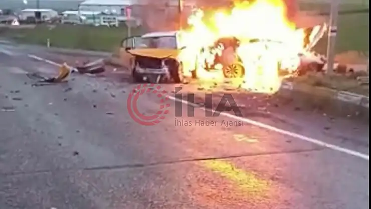 Otomobiller kavşakta çarpıştı, araçlar cayır cayır yandı: 8 yaralı