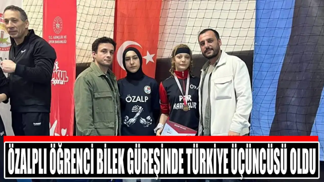 Okul sporları kapsamında düzenlenen Türkiye Şampiyonası'nda mücadele eden Özalp Ağabey Özbey Anadolu Lisesi öğrencisi Özge Altun, bilek güreşinde Türkiye üçüncüsü oldu.