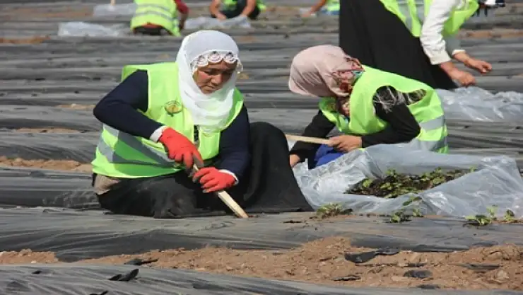 Vanın Özalp Belediyesi tarafından kadınların sosyal ve ekonomik yaşama katılımını sağlamak amacıyla 2015 yılı projesi kapsamında 5 dönümlük araziye toplam 20 bin çilek fidesi ekildi.