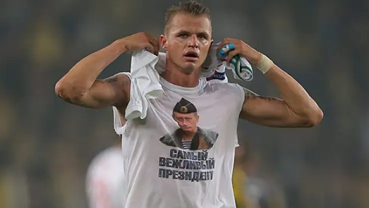Dmitry Tarasov, Kadıköy'de Fenerbahçe'ye 2-0 kaybettikleri maç sonunda formasını altından çıkardığı Putin fotoğraflı tişörtünde "En kibar başkan" yazısı bulunuyordu. UEFA, Rus futbolcuyu politik, dini ve kişisel sloganlar içeren tişörtler ya da yazıları futbol sahalarında yasakladığı için disiplin kuruluna sevk etmişti.