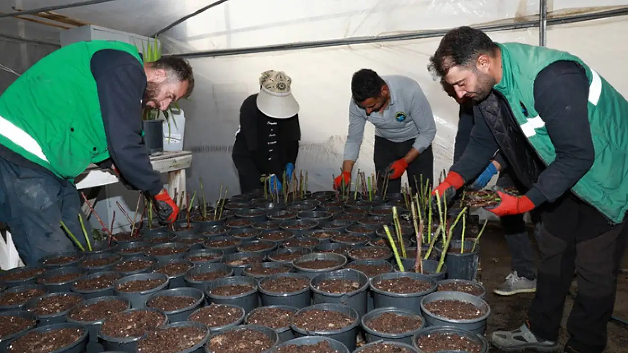 İpekyolu Belediyesi Park ve Bahçeler Müdürlüğü, kış sezonuyla birlikte üretim alanları olan seralarda çelikle gül fidesi çoğaltma çalışmalarına başladı.