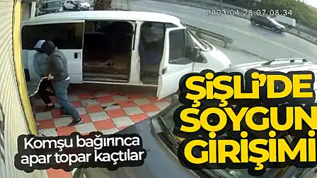 Şişli'de minibüsle soygun girişimi kamerada: Komşu bağırınca apar topar kaçtılar