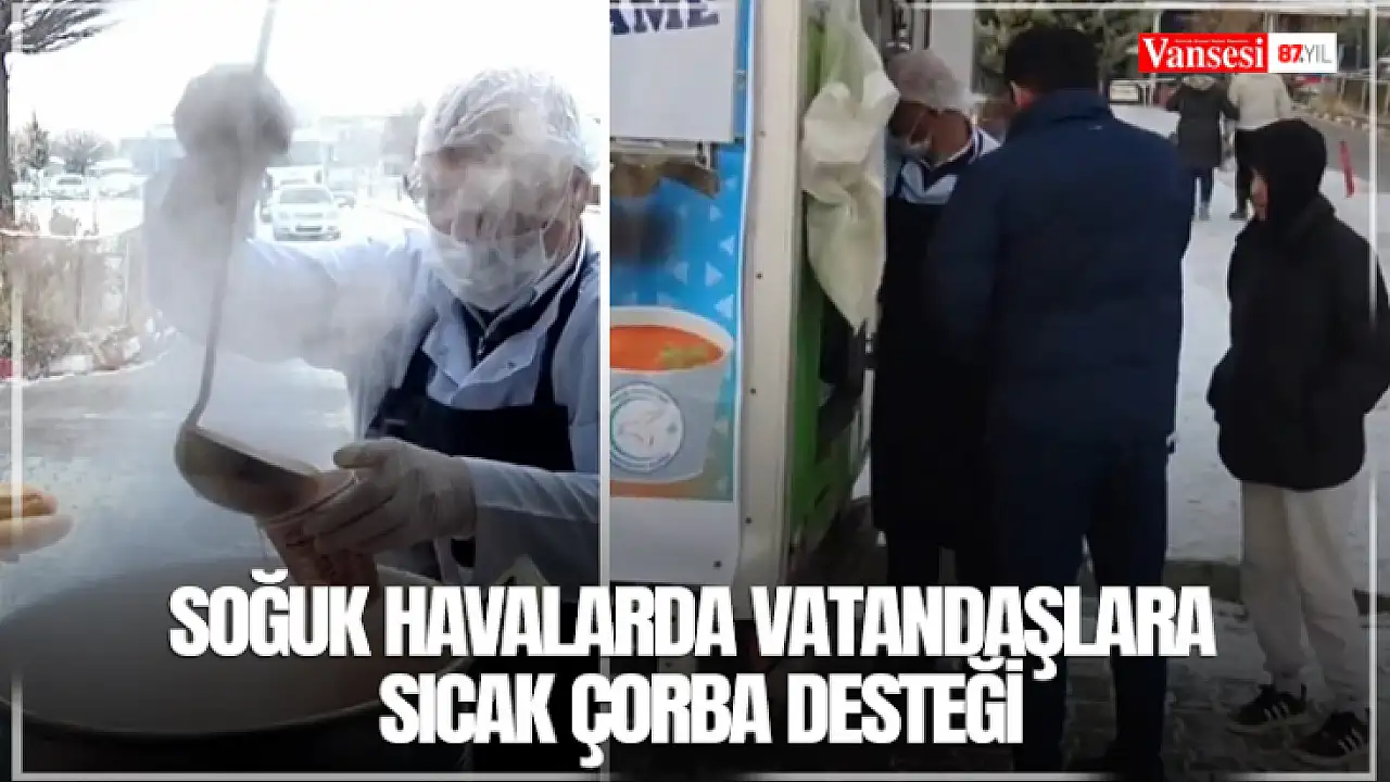 Erciş Belediyesi, soğuk havalarda işe, okula giden ve hastane önünde bekleyen vatandaşlara hafta içi sabah saatlerinde sıcak çorba ikram ediyor.