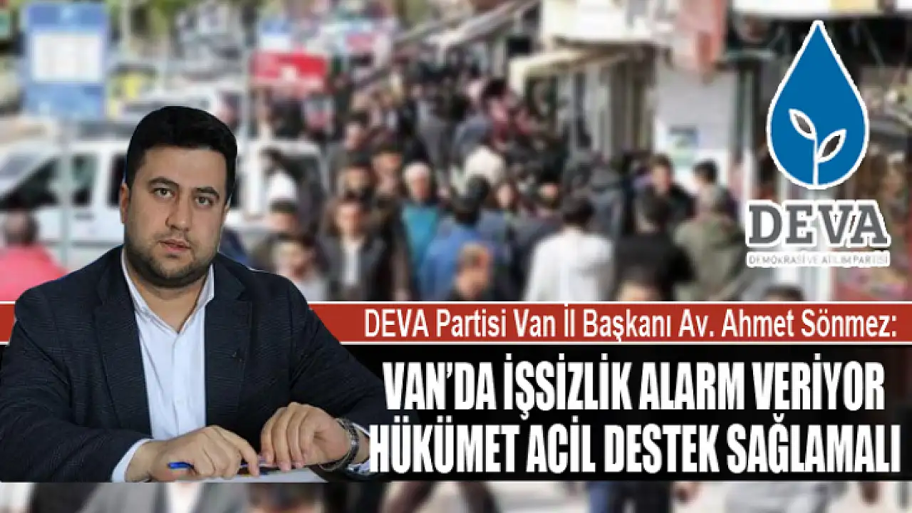 DEVA Partisi Van İl Başkanı Av. Ahmet Sönmez, Van'da ve Türkiye genelinde giderek derinleşen işsizlik sorununa dikkat çekerek hükümete çağrıda bulundu.
