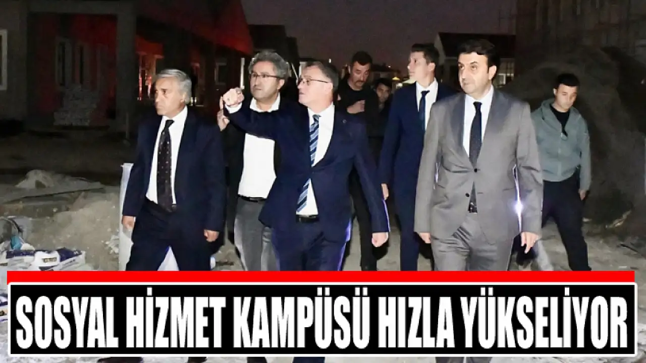 Vali Ozan Balcı, inşaatı devam eden bölgenin ilk sosyal hizmet kampüsünde incelemelerde bulundu.