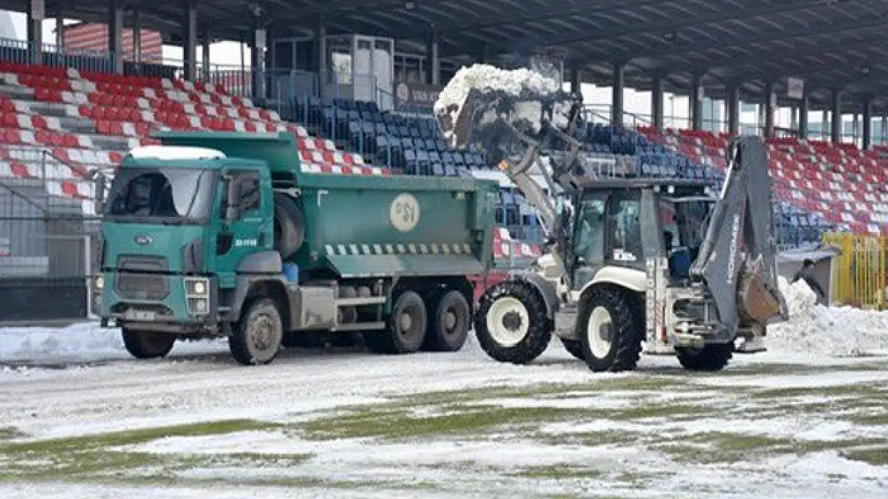 Yoğun kar yağışının ardından stat zemininde biriken karın ağır tonajlı iş makineleriyle temizlenmesi, spor kamuoyunda ve taraftarlar arasında geniş yankı uyandırdı.