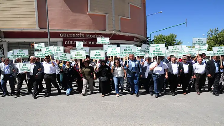 Son günlerde Türkiyede yaşanan çatışmalı ortamdan endişe duyan 165 Sivil Toplum Kuruluşu yöneticileri yakalarına astıkları barış istiyoruz yazılı kokart ve ellerindeki taşıdıkları dövizlerle barış için yürüdüler.