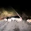 Bitlis'in Tatvan ilçesinde bir köy yolunda domuz sürüsü görüntülendi.