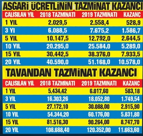 Yeni yılla birlikte kıdem tazminatı hesapları da değişti. Çalışılan her yıl için asgari ücretlilere 528,9, yüksek maaşlılara 583,18 lira avantaj oluştu.