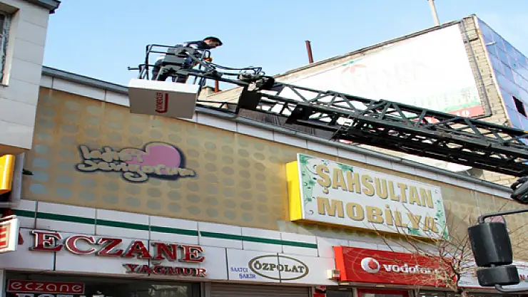 Büyükşehir Belediyesi ekipleri, olası bir kazayı önlemek amacıyla işyerlerinin saçaklarından sarkan buz kütlelerini temizledi.
