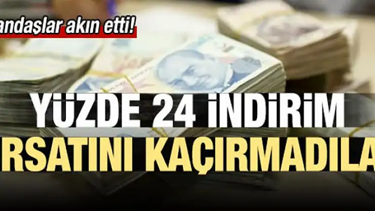 Toplu Konut İdaresi (TOKİ) Başkanı Ergün Turan, borcunu ödeyip tapusunu hemen almak isteyen konut ve iş yeri alıcılarına yüzde 24 indirim getiren kampanyadan 13 bin 321 vatandaşın yararlandığını, bundan 588 milyon 575 bin lira hasılat elde edildiğini bildirdi.