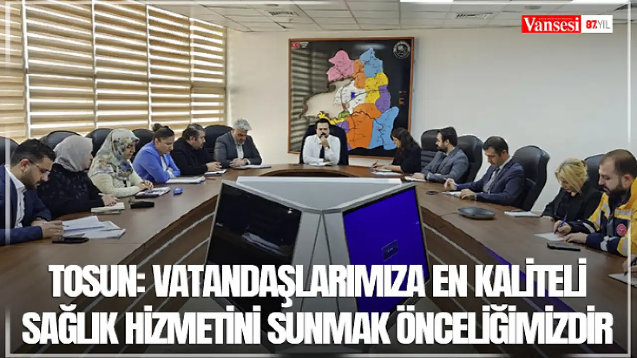 Van İl Sağlık Müdürü Op. Dr. Muhammed Tosun başkanlığında gerçekleştirilen haftalık toplantıda, başkanlıkların yürüttüğü çalışmalar ve sağlık hizmetlerinde iyileştirme konuları değerlendirildi.