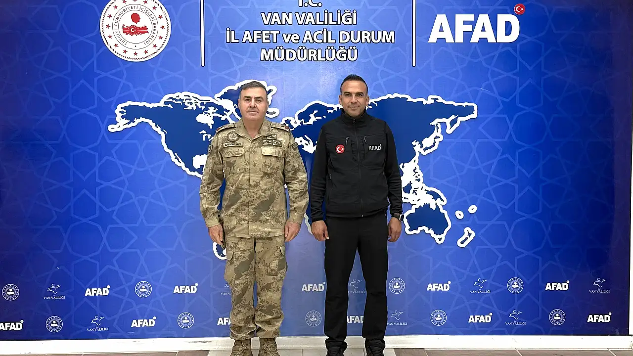 Van İl Jandarma Komutanı Tuğgeneral Mücahit Avkıran, AFAD İl Müdürü Mehmet Ulutaş'ı ziyaret ederek iki kurum arasındaki ortak faaliyetler ve iş birliği projelerini değerlendirdi.