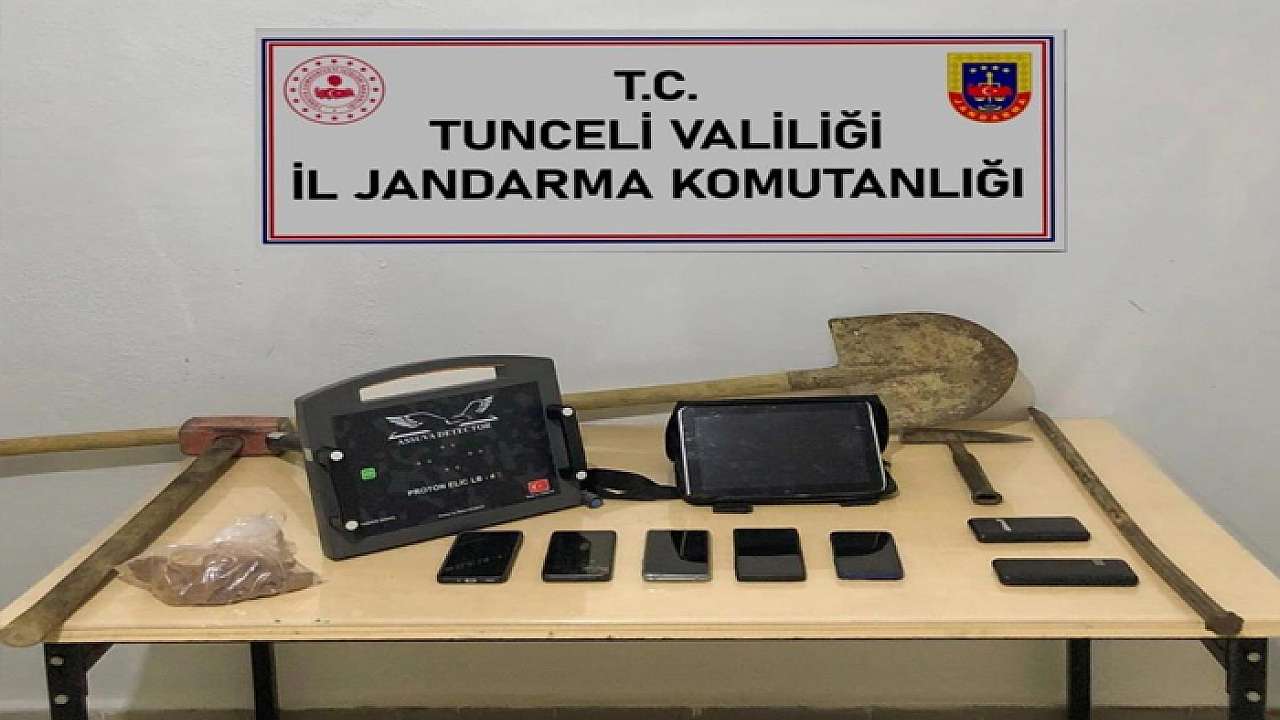 Tunceli İl Jandarma Komutanlığı kaçakçılık suçlarının önlenmesine yönelik çalışmalarını sürdürüyor. Bu çerçevede merkeze bağlı Dikenli Köyü bölgesinde teknik takip sonucu şüpheli araç ve şahıs hareketliliği tespit edildi. Ardından jandarma tarafından yapılan operasyonda Dalik Mezrası dere yatağında 5 şüpheli, suçüstü yakalandı. Olay yerinde yapılan aramada; 1 adet metal arama dedektörü, 1 adet görüntüleme tableti, 2 adet powerbank, 5 adet cep telefonu ve çeşitli kazı malzemelerinin ele geçirildiği bildirildi.