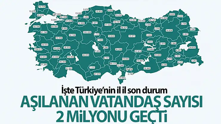 Sağlık Bakanlığı Covid-19 Aşısı Bilgilendirme Platformu üzerinden paylaşılan anlık verilere göre, bugüne kadar Türkiye genelinde aşılanan vatandaş sayısı 2 milyonu geçti.