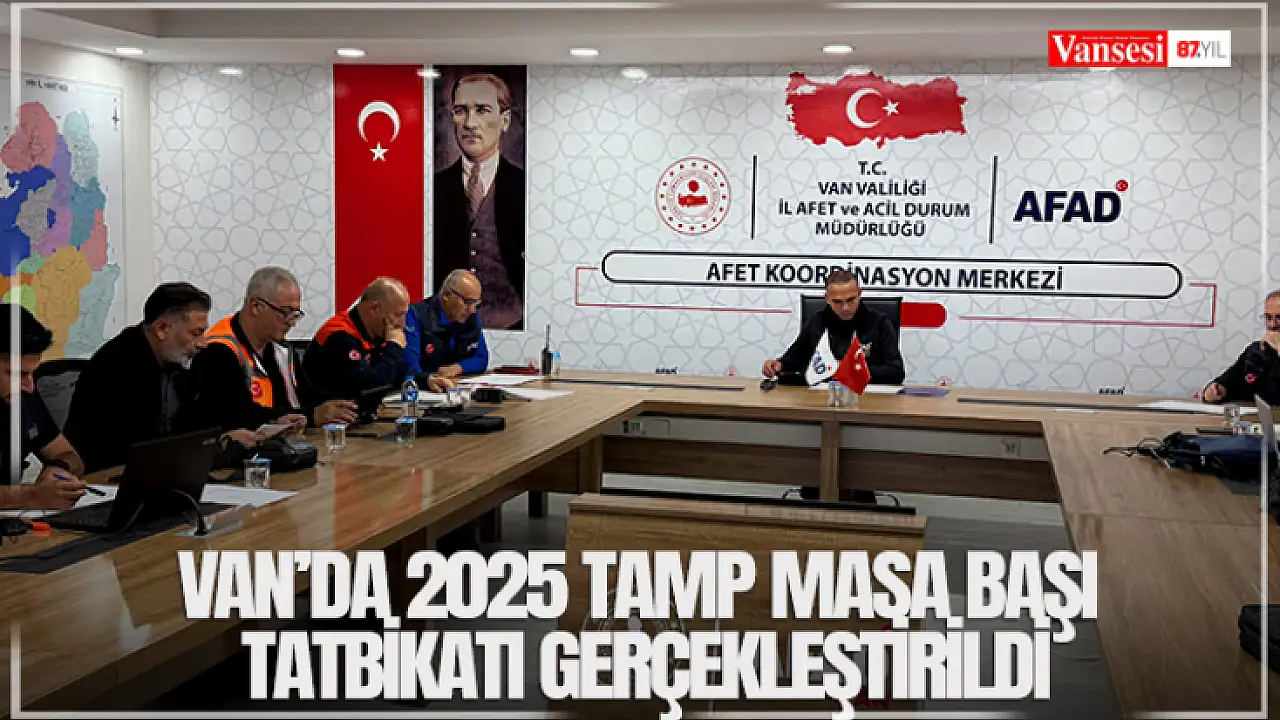 Van'da AFAD İl Müdürlüğü koordinasyonunda gerçekleştirilen 2025 TAMP Masa Başı Tatbikatı ile afetlere müdahale kapasitesi, kurumlar arası işbirliği ve AYDES süreçleri değerlendirildi.