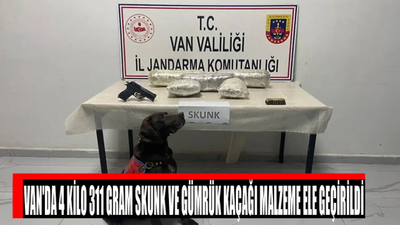 Van'ın Başkale ilçesinde jandarma ekiplerince yürütülen çalışmalar sonucunda 4 kilo 311 gram skunk maddesi ile gümrük kaçağı malzeme ele geçirildi.