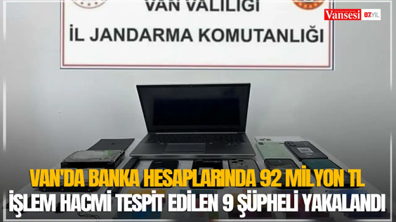 Van İl Jandarma Komutanlığınca yürütülen operasyonda, 6 ay süren teknik ve fiziki takip sonucu banka hesaplarında 92 milyon TL işlem hacmi tespit edilen 9 şüpheli yakalandı.