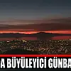 Van'da dün akşam saatlerinde yaşanan gün batımı, kentin doğal güzelliğini bir kez daha gözler önüne serdi. Güneşin ufuk çizgisinden kaybolmasının hemen ardından gökyüzünde oluşan kızıllık, kartpostal karesini andıran manzaralar oluşturdu.