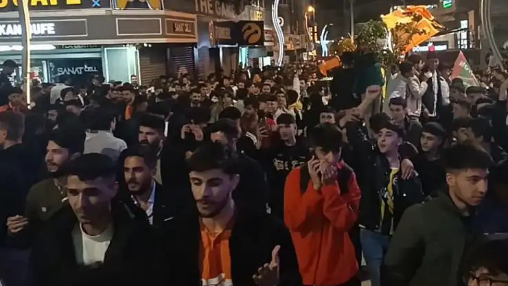 Süper Lig’in 37. haftasında Galatasaray ile Fenerbahçe karşı karşıya geldi. Tüm Türkiye’de olduğu gibi Van’da da heyecanla takip edilen derbinin bitiş düdüğüyle taraftarlar kendilerini sokağa attı. Fenerbahçe'nin 1-0 üstünlüğüyle sona eren maçın ardından sevinç gösterisi yapan sarı-lacivertli taraftarlar, takımlarının galibiyetini kutladı.