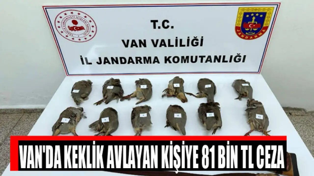 Van'ın Erciş ilçesinde keklik avlayan kişiye 81 bin 441 TL idari para cezası kesilirken, kaçak avlanılan 12 kekliğe el konuldu.