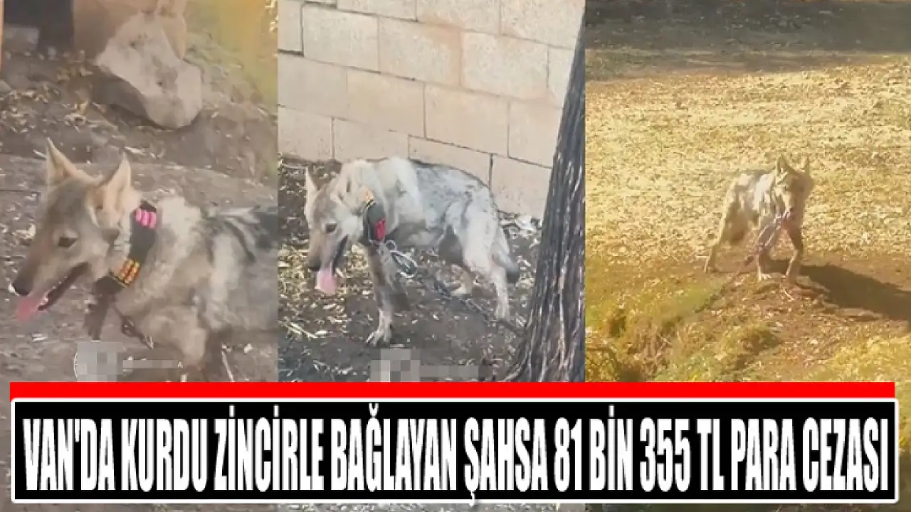Van'ın Muradiye ilçesinde tasma taktığı kurdu zincirle evin önüne bağlayan şahsa 81 bin 355 TL idari para cezası uygulandı.