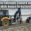 Van Gölü sahilinde çamura saplanan traktör kepçe ile kurtarıldı