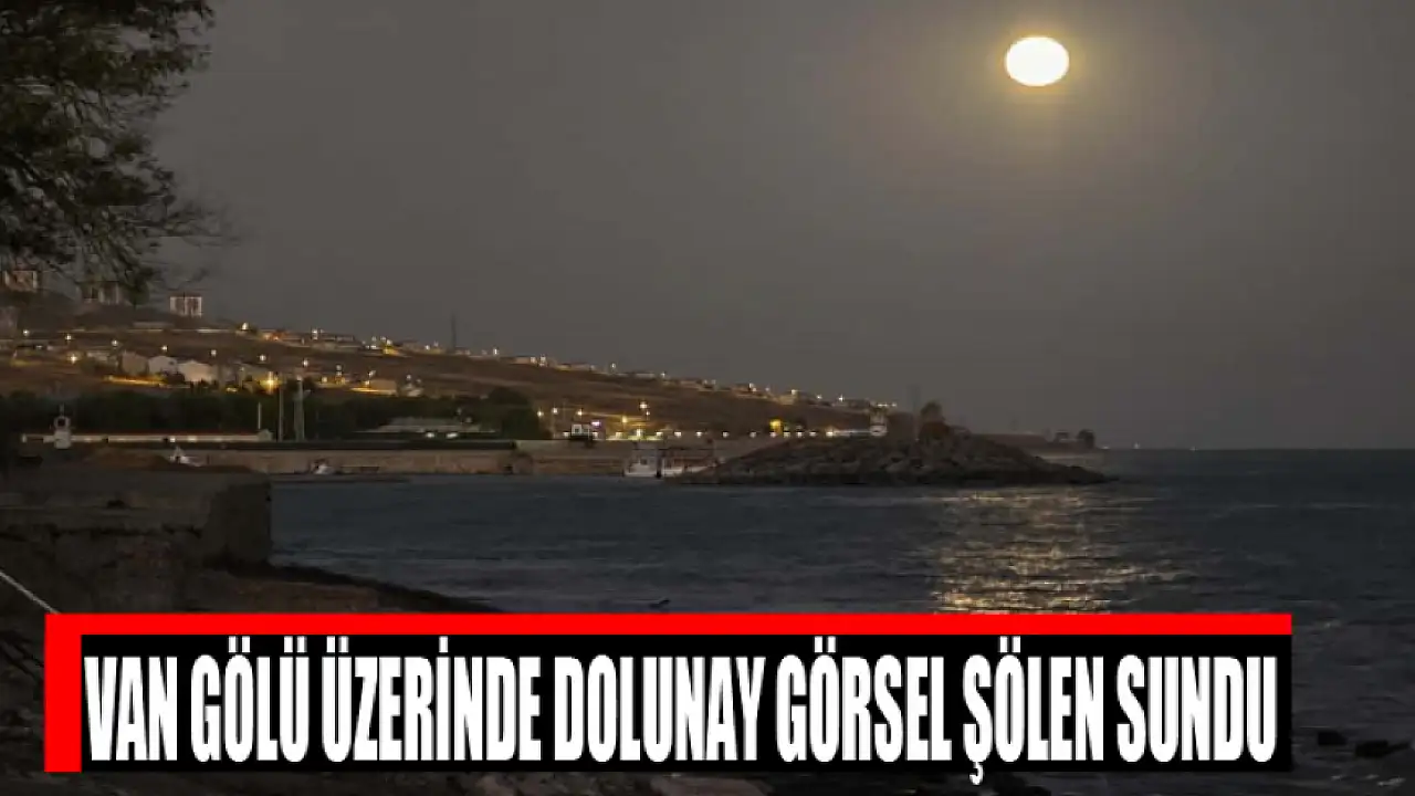Bitlis'in Ahlat ilçesinde akşam saatlerinde gökyüzünde beliren dolunay, Van Gölü üzerinde oluşturduğu yakamozla izleyenlere adeta görsel bir şölen sundu.
