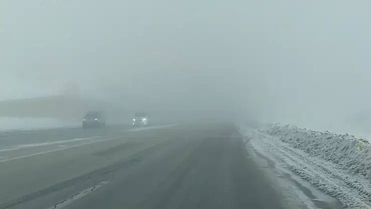 Van-Özalp kara yolunda sabah saatlerinde etkili olan yoğun sis, görüş mesafesini 30 metreye kadar düşürerek sürücülere zor anlar yaşattı.