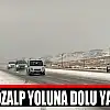 Van-Özalp karayolundan aniden bastıran şiddetli dolu yağışı, kısa sürede yolu beyaza bürürken, sürücüler zor anlar yaşadı.