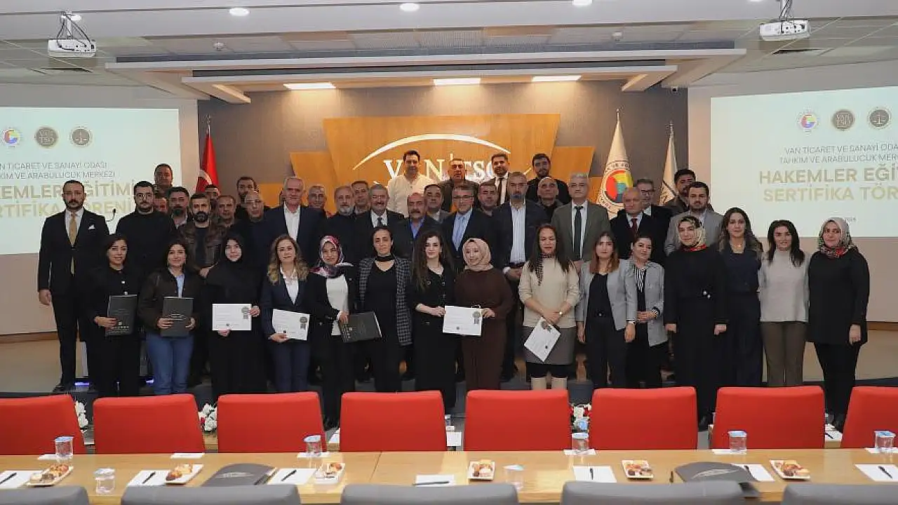 Van TSO M. Rifat Hisarcıklıoğlu Salonu'nda gerçekleşen törende, yapılan eğitim sonucu başarılı olan ve tahkim davalarında görev alacak hakemler sertifikalarını aldı. Eğitim sürecinde katılımcılara; arabuluculuk, tahkim ve MED-ARB, tahkim anlaşmaları, tahkim yargılaması ve uygulamalı dersler olmak üzere kapsamlı bilgiler sunuldu.
