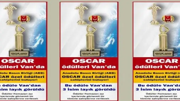Anadolu Basın Birliği (ABB) Van Şubesi tarafından düzenlenecek görkemli törenle ABB OSCAR Özel Ödülleri sahiplerini bulacak.