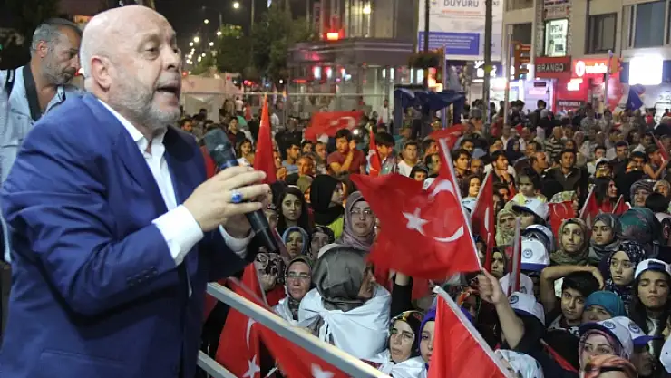 10 yılda bir yapılan darbelerin milletin gözünü açtığını ve yakın Türkiye tarihinin artık 15 Temmuz öncesi ve sonrası diye ikiye ayrılacağını ifade eden Arslan, “15 Temmuz’da milletimiz ilk kez bir darbe girişimini püskürttü. 15 Temmuz gecesi namertliklerin en ilerisini, ihanetin en koyusunu, alçaklığın en berbatını yapanlar, bir de onların doğrulttuğu silahlara karşı göğsünü siper eden, onuruyla direnen kahramanlar vardı. O kahramanları buradan saygıyla selamlıyor, şehitlerimize Allah’tan rahmet, gazilerimize şifalar diliyorum. 15 Temmuz hiçbir zaman unutulmayacak, unutturulmayacaktır. Eğer bunların planları halkımız tarafından bozulmasaydı, şimdi sizlerle konuşmak yerine onların silahlarıyla infaz edilmiş olacaktık. Bizi bu meydanlarda buluşturan ve kucaklaştıran Rabbime ne kadar hamd etsek azdır. Sizlere ve ülkemin bütün insanlarına teşekkür ediyorum. 22 gündür meydanlarda milletimizin birliği, ülkemizin bütünlüğü için, kardeşliğimiz ve geleceğimiz için, milli irade için ve hep birlikte için meydanlardayız. Bu meydanlar geleceğimizin ve birliğimizin güvencesi oldu. Bu meydanlarda milletimiz, hükümetiyle, parlamentosuyla bütünleşti” dedi.