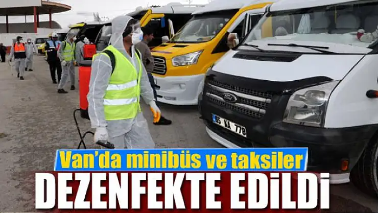 Van Büyükşehir Belediyesi, korona virüs ile mücadele çalışmaları kapsamında kentte toplu taşıma hizmeti veren minibüs ve ticari taksileri dezenfekte etti.