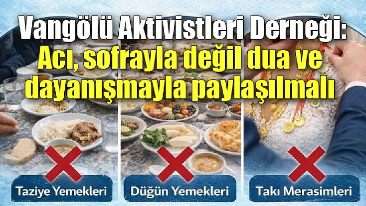 Vangölü Aktivistleri Derneği, toplumsal hayatta uzun süredir sorgulanan taziye ve düğün yemekleriyle takı merasimlerinin kaldırılmasını istedi.