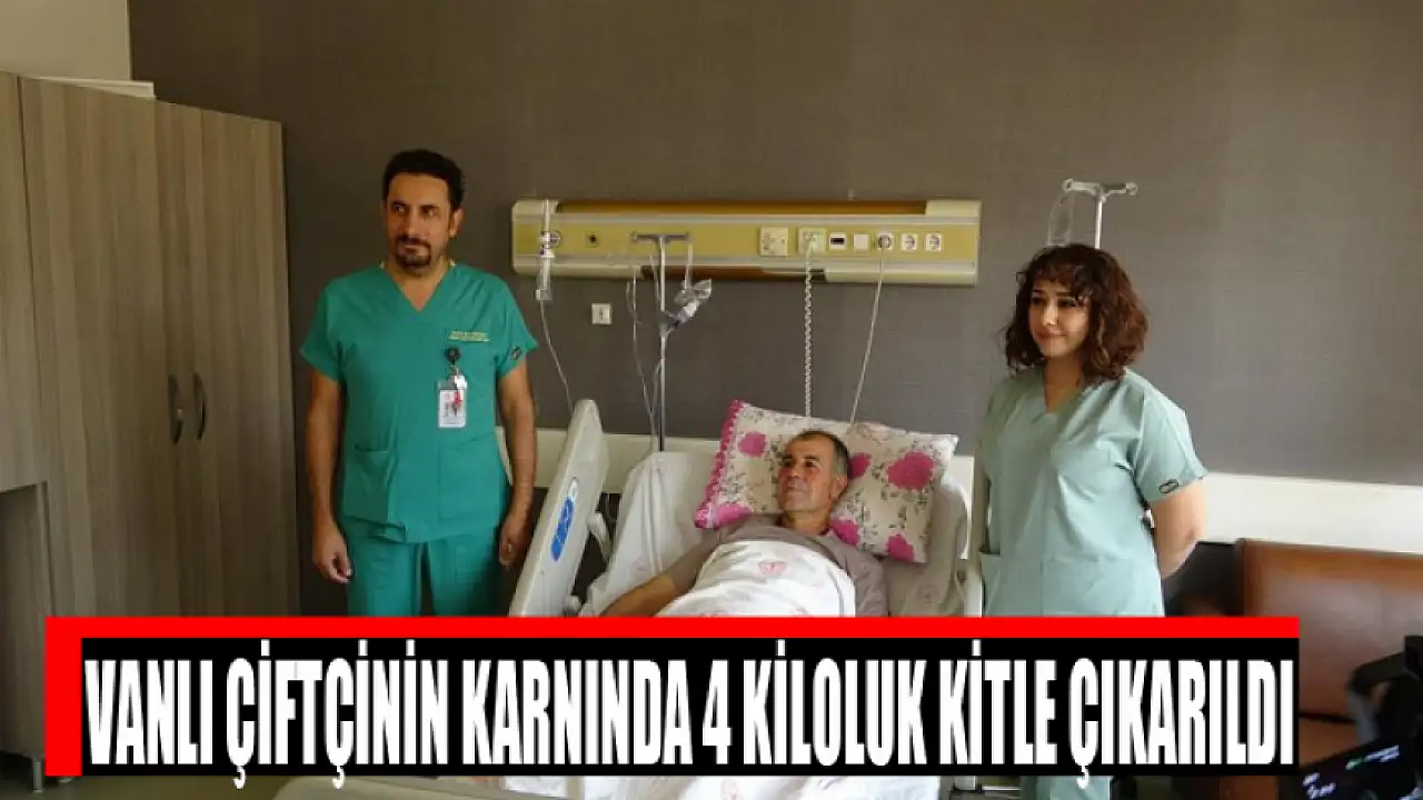 Van'ın Erciş ilçesinde nefes darlığı ve karnındaki şişlik şikayetiyle hastaneye başvuran çiftçi Medeni Çelik'in karın bölgesinde 10 kişilik ekibin katıldığı 3,5 saatlik ameliyatla 4 kilogramlık kitle çıkarıldı.