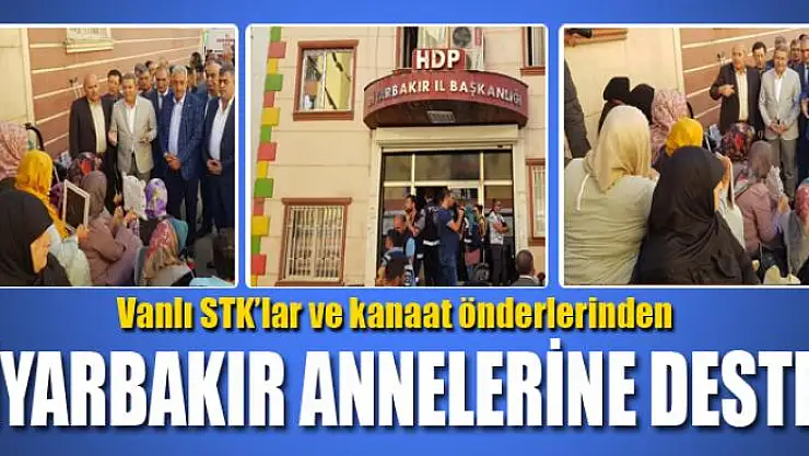 Van’da faaliyet gösteren Sivil Toplum Kuruluşu temsilcileri, kanaat önderleri ve Türkiye’nin farklı illerinde Vanlıların kurduğu dernek ve vakıf temsilcileri Diyarbakır annelerine destek için bugün Diyarbakır’a gitti. Çocukları terör örgütü PKK tarafından kaçırılan veya HDP'ye gittikten sonra çocuklarından bir daha haber alamayan annelerin, HDP Diyarbakır İl Başkanlığı önünde sürdürdükleri evlat nöbetine Vanlı sivil toplum örgütlerinden ve kanaat önderlerinden destek geldi. HDP Diyarbakır İl Başkanlığı önünde evlat nöbetini sürdüren anneleri ziyaret eden Vanlı STK temsilcileri adına birer konuşma yapan Van S.S. Hızır Esnaf ve Sanatkarlar Kredi Kefalet Kooperatifi Başkanı Faruk Alpaslan ve Van Ticaret ve Sanayi Odası Başkanı Necdet Takva, annelerin huzur isteyen, evladını geleceğe hazırlamak isteyen tüm halkın duygularına tercüman olduğunu söyledi.