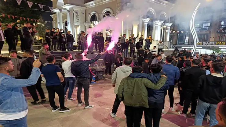 Kent meydanında kurulan dev ekrandan maçı takip eden yüzlerce taraftar, alınan 3-1'lik galibiyetin ardından büyük coşku yaşadı. Takımlarının attığı her golde sevinç çığlıkları atan taraftarlar, meşaleler yakarak meydanda kutlama yaptı.