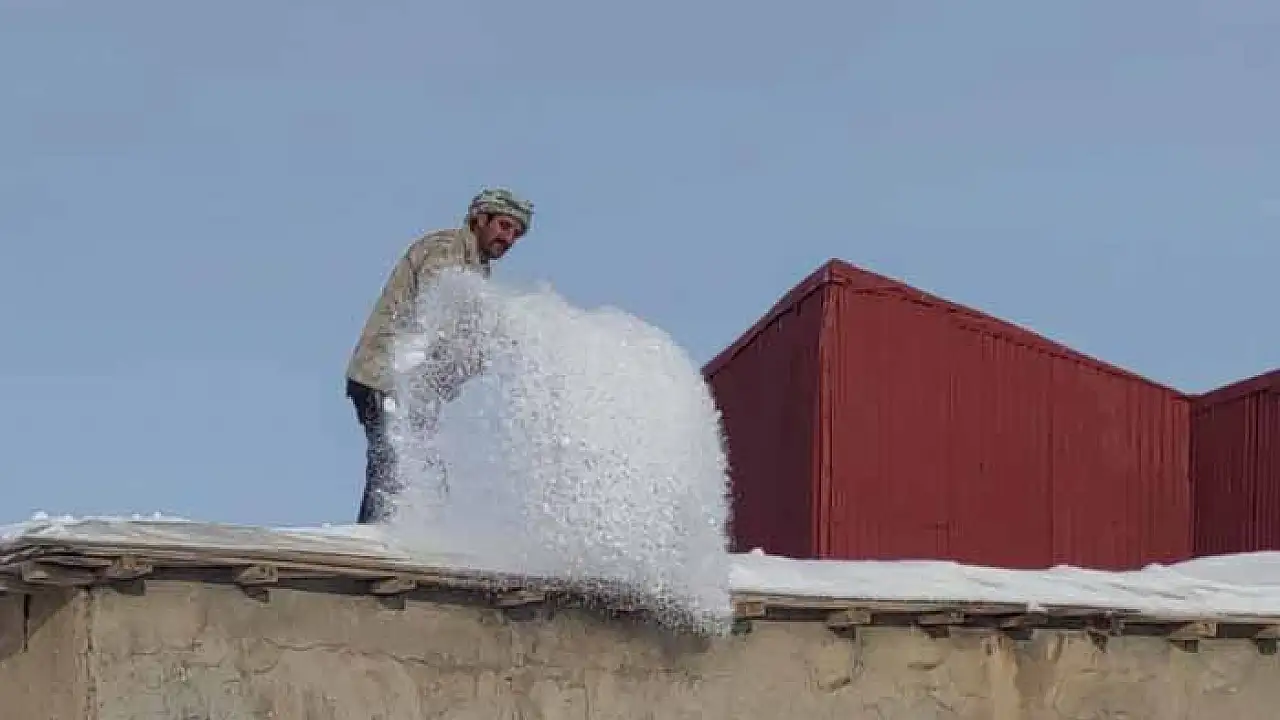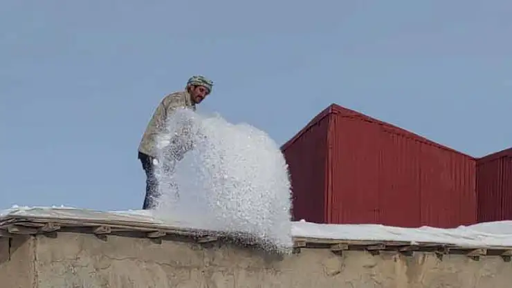 Van'ın Çatak ilçesinde geçtiğimiz hafta etkili olan yoğun kar yağışının ardından vatandaşlar, damlarda biriken kar kütlelerini temizlemek için seferber oldu.