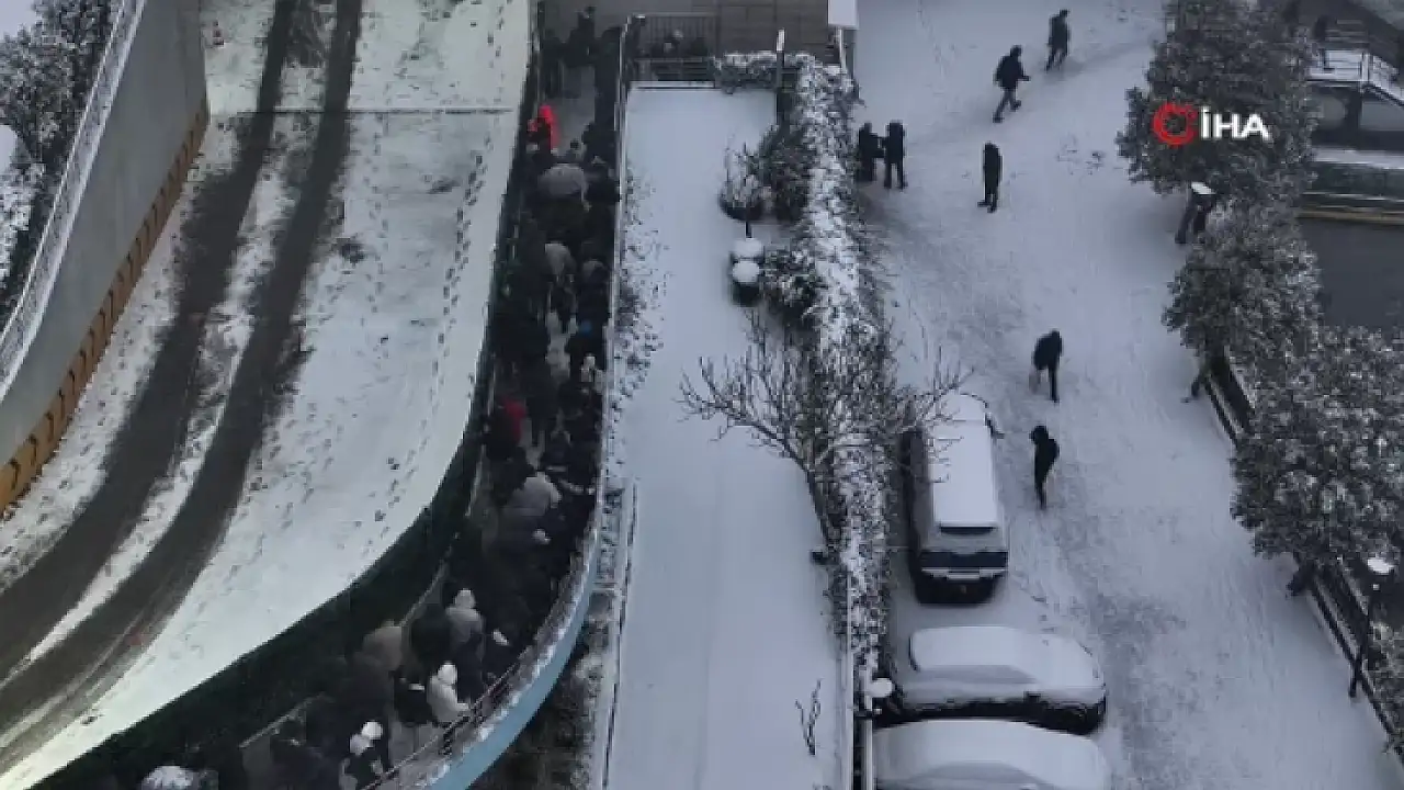 İstanbul'da etkili olan kar yağışı vatandaşlara zor anlar yaşattı. Karla kaplı yollarda yürümeye çalışan vatandaşların karla imtihanı havadan görüntülendi.