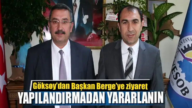 Sosyal Güvenlik Kurumu Müdürü Abidin Göksoy, Van Esnaf ve Sanatkârlar Odası Başkanı İsa Berge'yi ziyaret ederek, devlete olan borçlarla ilgili öne çıkan yapılandırma konusuna değinerek, borcu olanların 31 Temmuz'a kadar yapılandırmadan yararlanmaları çağrısında bulundu.