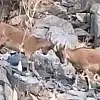 Yavru dağ keçilerinin tatlı çekişmesi kamerada