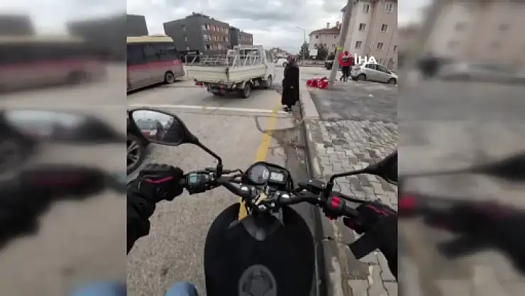 Eskişehir'de yoğun trafikte yolun karşısına geçemeyen yaşlı kadına, trafikte seyir halindeki motosiklet kullanıcısı yardım etti.