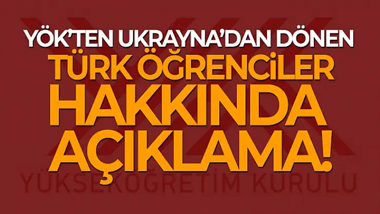YÖK, Ukrayna'daki üniversitelerde okuyan ve ülkede yaşanan çatışmalar sonrasında Türkiye'ye dönüş yapan Türk öğrenciler hakkında bir açıklama yaptı. Yapılan yazılı açıklamada, “Yükseköğretim Kurulu, Ukrayna'da yakın zamanlarda ortaya çıkan savaş ve çatışma sebebiyle öğrenimlerini yarıda bırakarak ülkemize dönmek zorunda kalan Türkiye Cumhuriyeti vatandaşı öğrencilerin eğitim ve öğretim hayatlarının aksamaması için alınabilecek önlemler üzerinde çalışmaktadır.