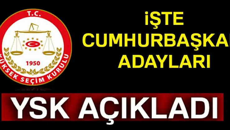YSK, cumhurbaşkanı adaylarını "Recep Tayyip Erdoğan, Meral Akşener, Muharrem İnce, Temel Karamollaoğlu, Selahattin Demirtaş, Doğu Perinçek" olarak belirledi.YENİŞAFAK