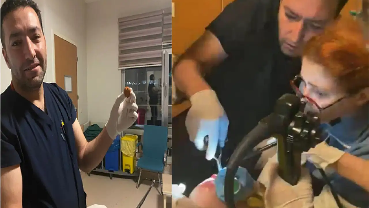 Yapılan muayene ve tomografi incelemesinde cevizin yemek borusuna takıldığı tespit edildi. Hastanın solunum yollarının tamamen tıkanmaması için zamanla yarışan sağlık ekibi, endoskopi yöntemiyle cevizi başarılı şekilde çıkardı.
